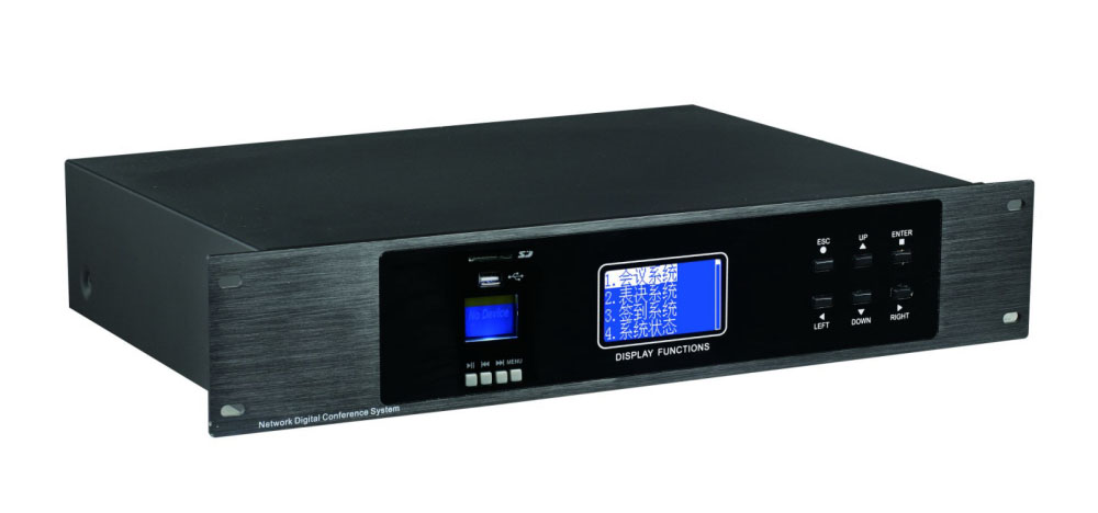 数字讨论主机  CP810 铝合金主面板,设计新颖时尚,带液晶显示屏和6个多功能按键,内置USB录音